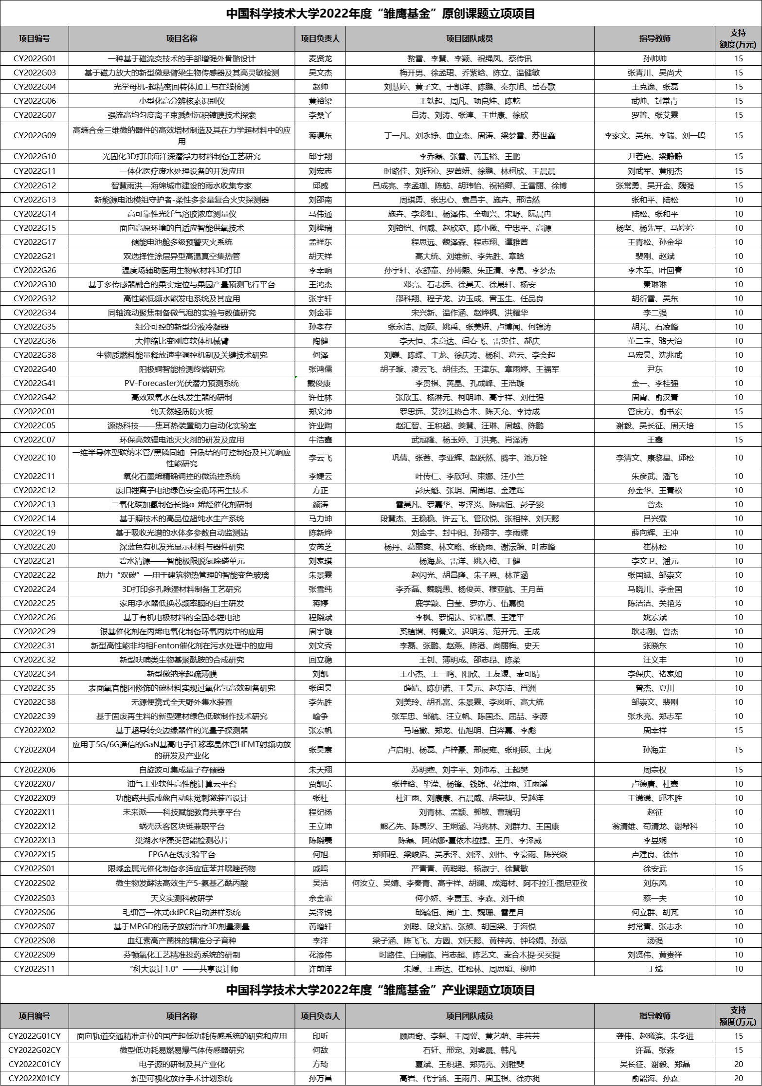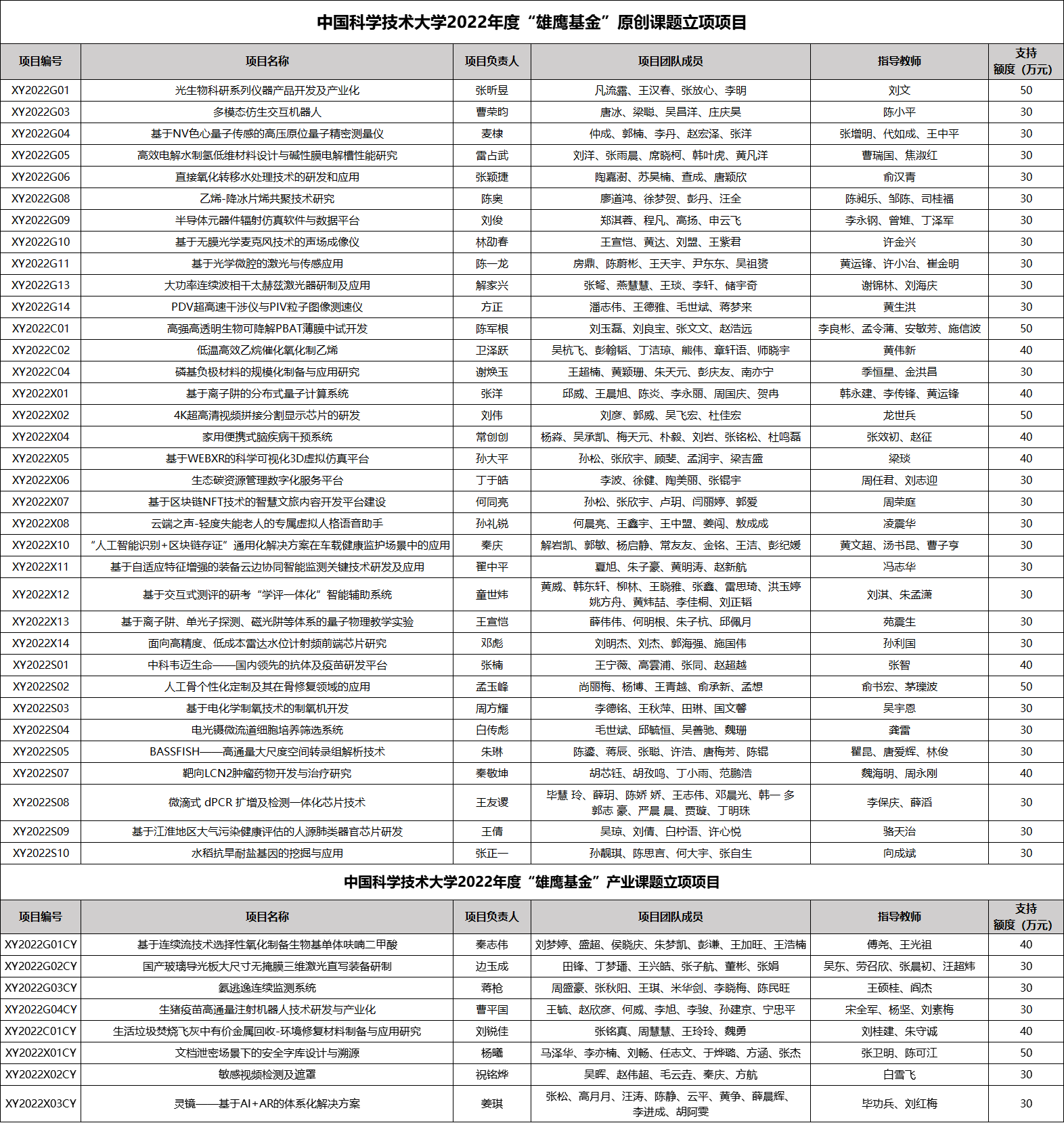 各项目团队: