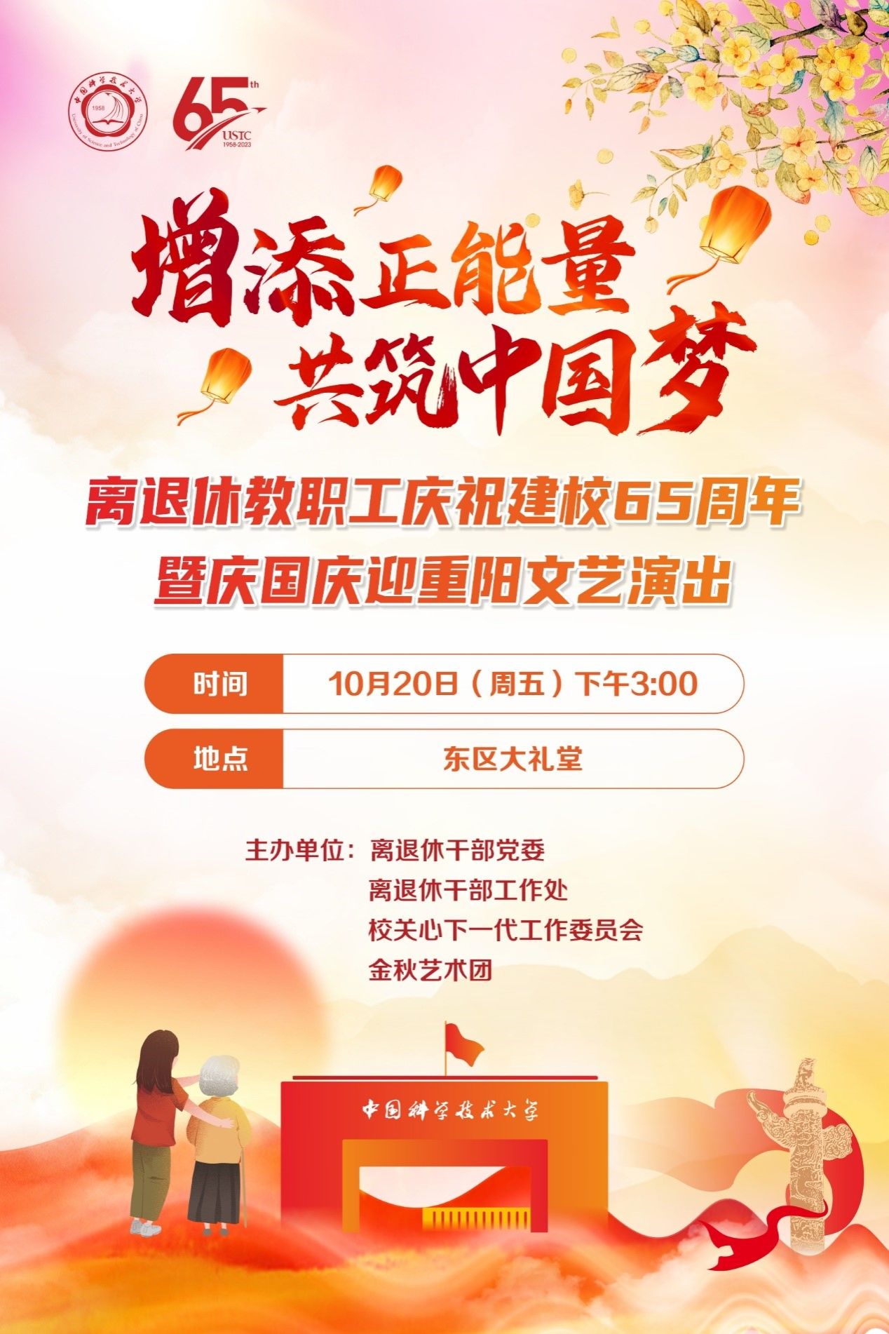 暖暖重阳意,浓浓敬老情。为庆祝天启网投建校65周年,在重阳佳节来临之际,离退休干部党委、离退休干部工作处联合校关心下一代工作委员会、金秋艺术团举办“增添正能量 共筑中国梦”离退休教职工庆祝建校65周年暨庆国庆迎重阳文艺演出。本次演出旨在弘扬尊老、敬老、爱老的中华传统美德,丰富离退休教职工的精神文化生活,展示“老有所学,老有所乐”的银发风采。