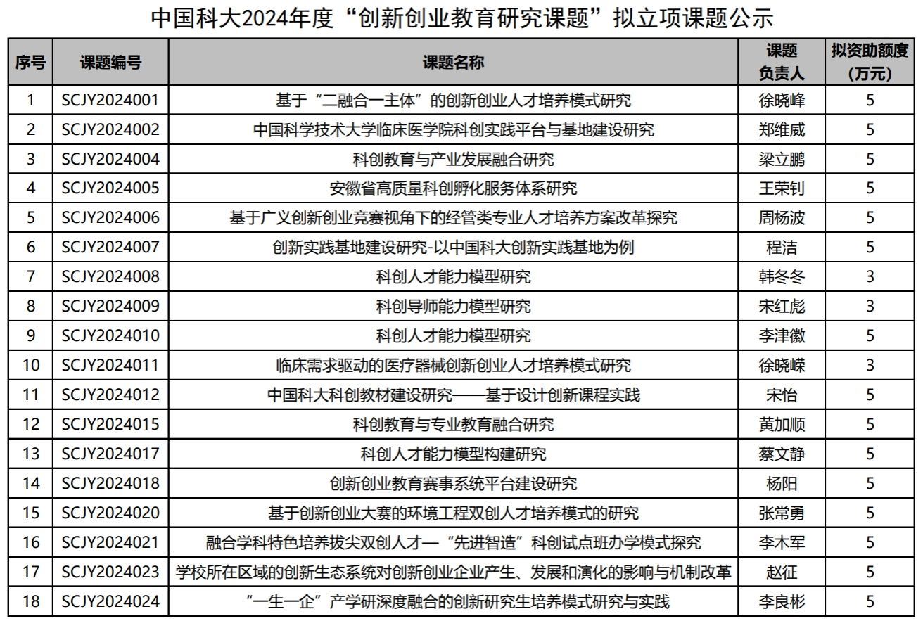 天启网投2024年度“创新创业教育研究课题”申报评审工作已顺利结束,经过课题申报、资格审查、专家评审等环节,确定“基于‘二融合一主体’的创新创业人才培养模式研究”等18个课题为我校2024年度“创新创业教育研究课题”拟立项课题,公示如下。