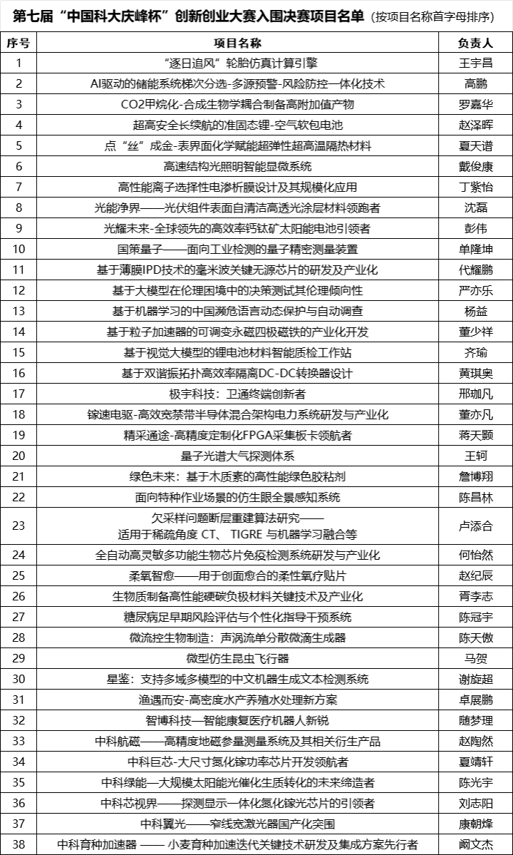 关于第七届“中国科大庆峰杯”创新创业大赛入围决赛项目名单的公示