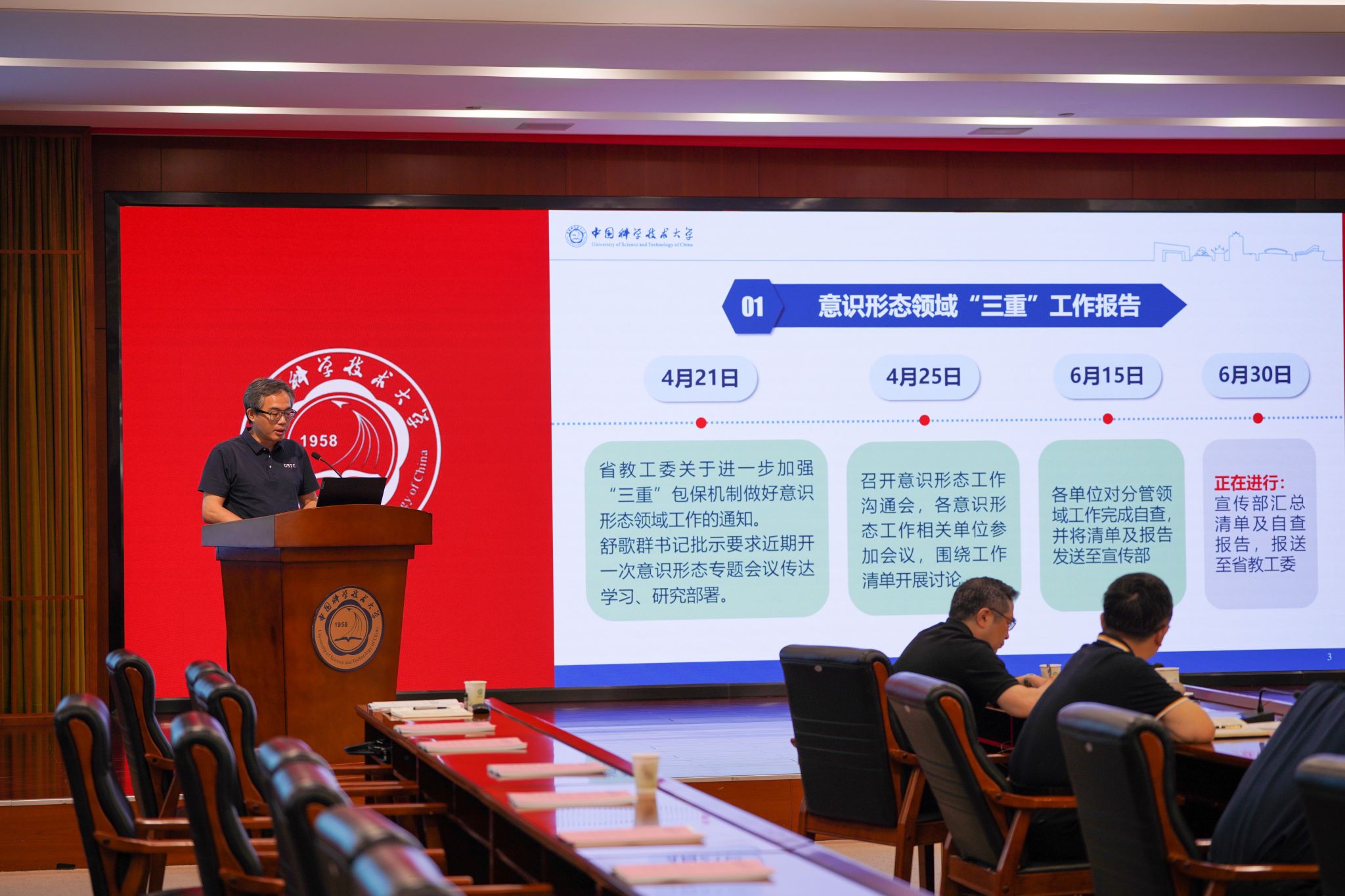 会上,舒歌群领学习近平总书记关于防范化解风险重要论述,传达学习中共中央办公厅有关文件精神。校党委宣传部常务副部长朱霁平汇报了学校“三重”排查情况及近期意识形态工作情况、教育部师生思想政治状况滚动调查情况;校实验室安全办公室常务副主任徐允河汇报了学校实验室安全工作情况。