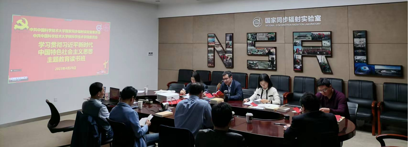 4月28日上午,国家同步辐射实验室、核科学技术学院中层领导班子举行学习贯彻习近平新时代中国特色社会主义思想主题教育读书班开班式并进行第一阶段学习。下午,党委理论学习中心组成员也共同参加了第二阶段的专题学习。党委书记李良彬主持会议。