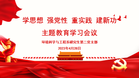 为深入学习贯彻习近平新时代中国特色社会主义思想和党的二十大精神,4月28日晚,环境科学与工程系研究生第二党支部在中区应用化学楼302会议室召开支部大会,开展理论学习活动。大会由支部书记曹成欣主持,支部党员、部分入党积极分子与发展对象参加会议。