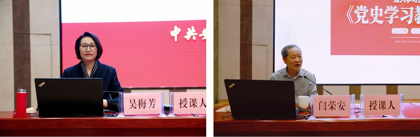 专题教学环节,全国人大代表、安徽省委党校党建教研部主任吴梅芳教授受邀作《传达第十四届全国人民代表大会第二次会议精神》主题报告。吴梅芳从大会基本情况、主题精神、安徽团参会情况三方面对“两会”精神进行全面讲解,重点解读了习近平总书记在“两会”期间的重要讲话精神。报告内容丰富、立意深远,对各离退休骨干全面理解和准确把握全国“两会”精神具有重要指导意义。金寨红军历史研究会会长、安徽干部学院兼职教授阎荣安受邀作《鄂豫皖革命根据地的光辉历程》专题报告,阎荣安教授从鄂豫皖革命根据地的概况、光辉历程、历史地位和深远意义等四个方面,带领大家重温革命历史,感悟红色精神,推动党史学习教育入脑入心、走深走实。