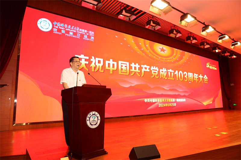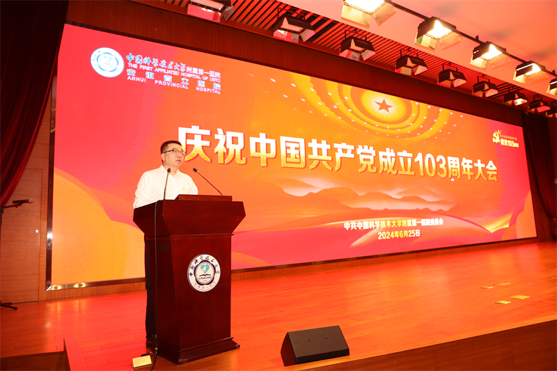 为庆祝中国共产党成立103周年,深入推进党纪学习教育走深走实,凝聚党员干部和广大职工奋进新征程的精神力量,激发干事创业的热情和动力,6月25日下午,附一院在南区学术交流中心召开庆祝中国共产党成立103周年大会。在党50年老党员、院领导班子成员、分党委和党总支书记、职能部门负责人、科主任、护士长、党支部书记、民主党派人士代表和新党员代表参加大会,大会由附一院党委副书记刘军主持。