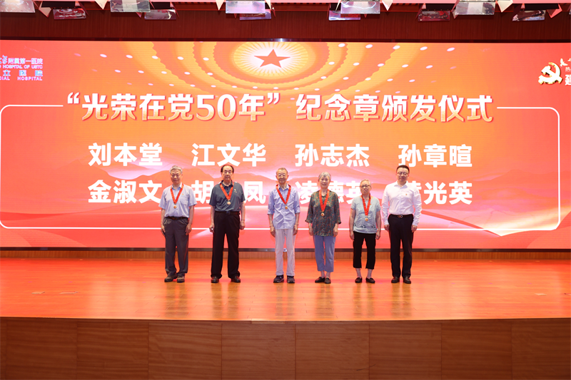刘连新随后向老党员代表颁授“光荣在党50年”纪念章。广大老党员离岗不离党、退休不褪色,为党的革命事业和卫生健康事业奋斗终身,为新时代党员干部树立了光辉榜样。在鲜红神圣的党旗下,新党员代表在刘连新的带领下庄严宣誓。新党员代表、妇产科主治医师徐汉杰分享了入党的心路历程,表达了对党的真挚感情。徐汉杰表示,将牢记入党初心,铭记党员使命,以实际行动践行入党誓词。