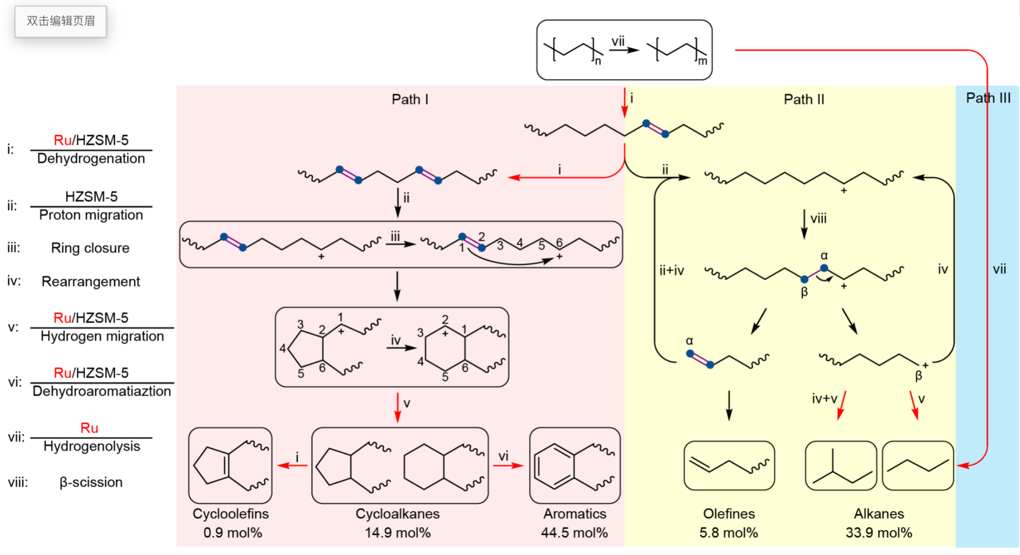 图2 无溶剂/无氢条件下高密度聚乙烯塑料循环升级反应路径