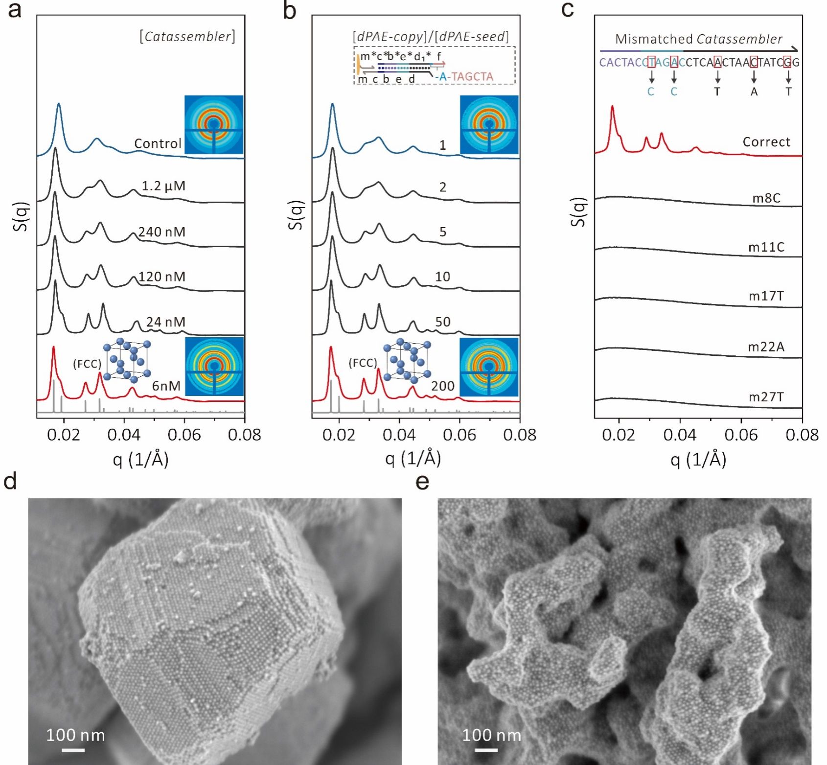 图2 DNA链替换催组装网络调控的单组分PAE自复制系统的小角X射线散射及扫描电镜表征结果。