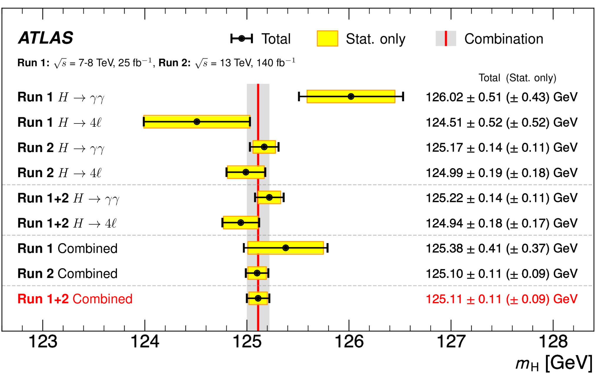 [1]ATLAS Collaboration, Combined Measurement of the Higgs Boson Mass from the H→γγ and H→ZZ*→4ℓDecay Channels with the ATLAS Detector Using √s = 7, 8, and 13 TeV pp Collision Data, Phys. Rev. Lett. 131 (2023) 251802, https://doi.org/10.1103/PhysRevLett.131.251802
